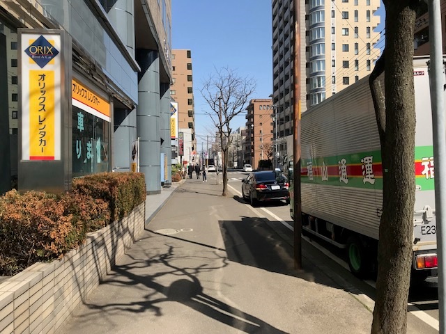 ③ 90m程進むと左側にある、オリックスレンタカー札幌駅前店の隣りに駐車場がございます。