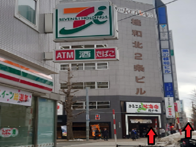 ⑥ 牛角の手前がクロスホテル札幌です。 |