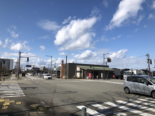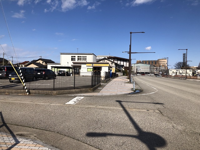 ① 「富山駅」北口を出て、ロータリーを左方向へ進みます。