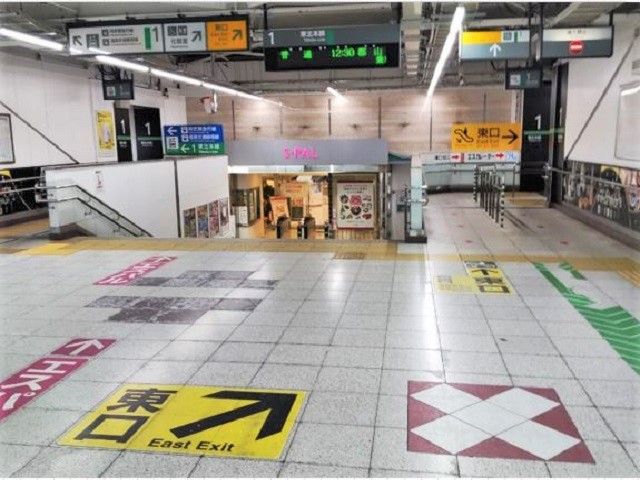 ③ 突き当りを在来線東口方向へ右折し、エスカレーターで1階へ降ります。 |