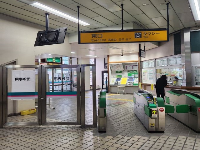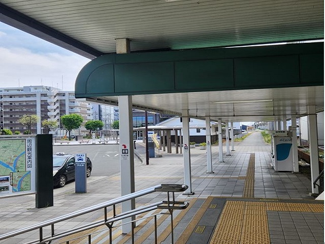 ① 新幹線「北上駅」東口改札口を出ます。
