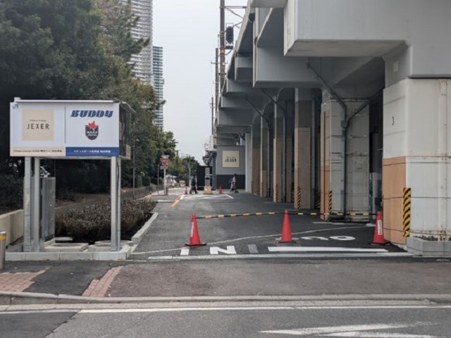 ④ 通路出口まで進むと道路の先に高架下駐車場が見えます。 |