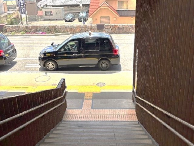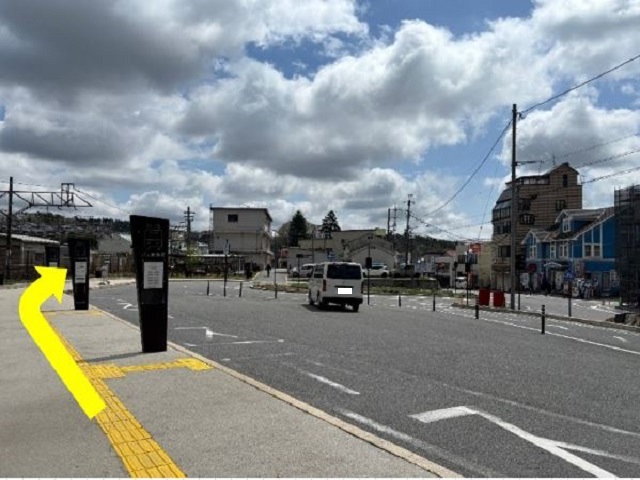② 階段を下りて左折し、奥のバスロータリーへ進みます。 |