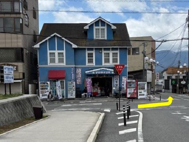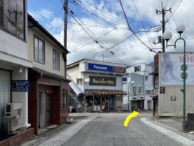 ④ 突き当りの横断歩道を渡り、斜め右方向に進みます。 |