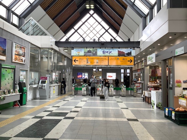 ① 軽井沢駅改札を出て北口方面に進みます。 |