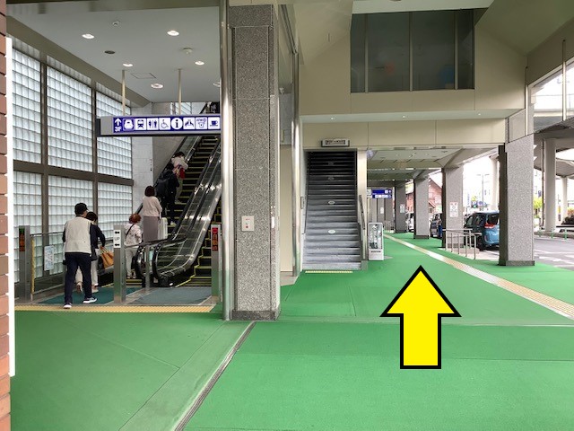 ② 自動ドアの手前を右折し、エスカレーターで1階に下ります。 |