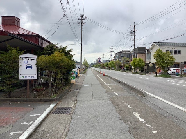 ⑥ 駅レンタカーの営業所から70mほど直進し、左手「駅レンタカー」の看板を目印に、駐車場へ入ります。 |
