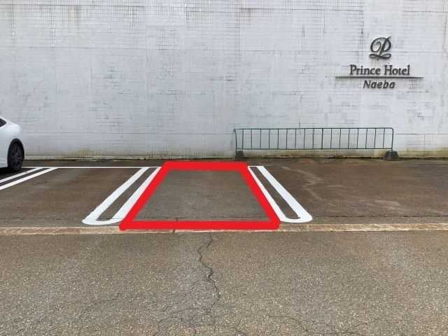 ② ホテルを背にして約50m左方向に進みます。専用車枠は左手にあります。
