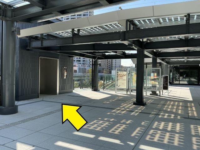 ④ TRACKS PARKに渡る橋の先にあるエレベータで1階に降ります。 |