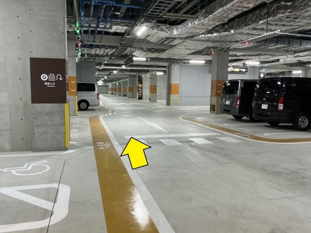 ⑦ 地下1階エレベータホールの自動ドアから駐車場に出て左方向に進みます。突き当り左手が専用車室です。 |