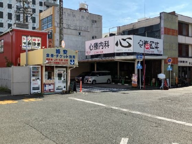 ③ 駅を左手に道なりに進みます。チケット売り場を目印に、路地へ入ります。 |