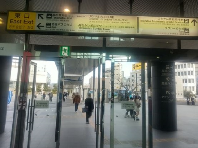 ① JR「高松駅」改札真正面東口を出て左折します。 |