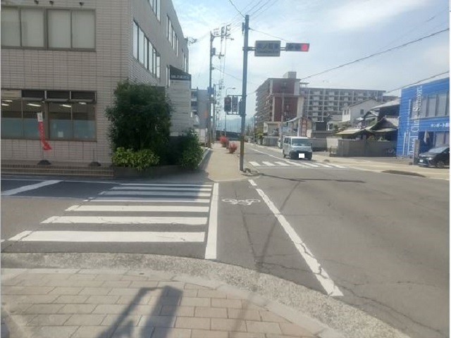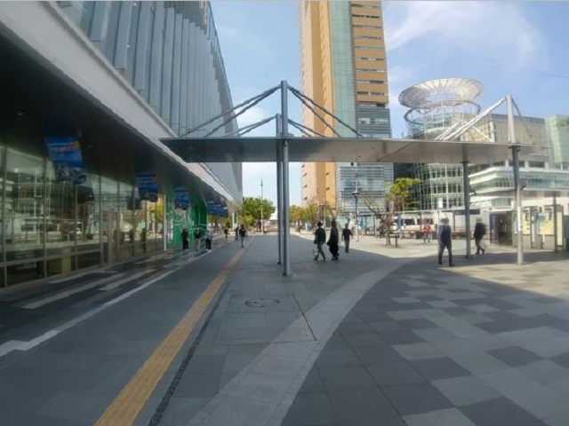 ③ 最初の角を左折し、高松オルネとサンポート合同庁舎の間を進みます。(高松オルネを左手側に直進) |