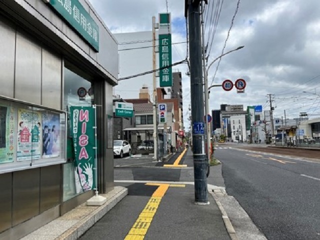 ① 舟入通り 広島信用金庫舟入支店の交差点を舟入病院方面に曲がります。