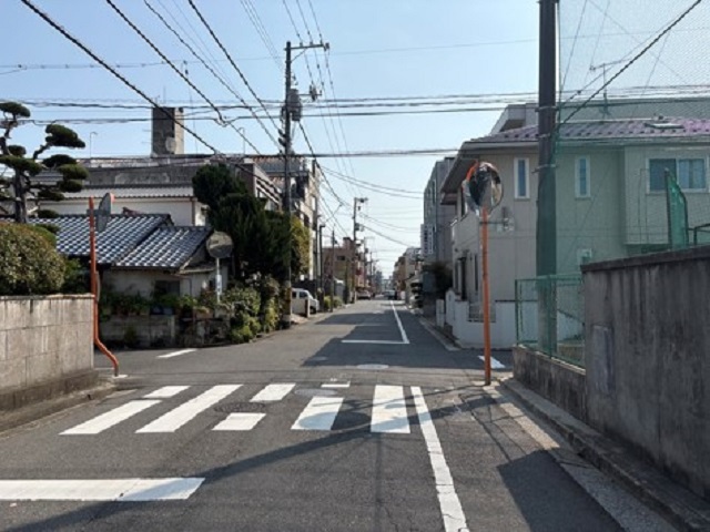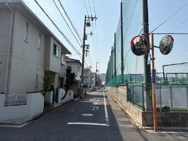 ① 広島観音高校校門から南観音方面に進み、最初の交差点を右に曲がります。