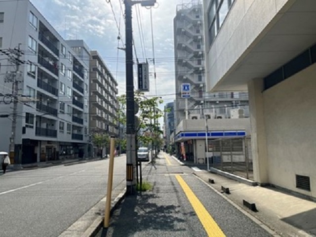 ① 「光町1丁目交差点」から瀬戸内高校方面へ進み、ローソン光町1丁目店の手前を右に曲がります。