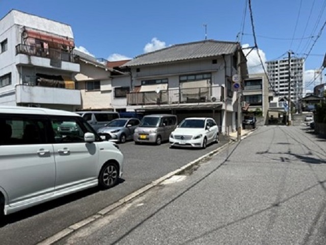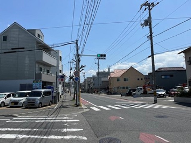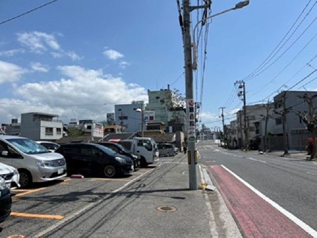 ② 180mほど直進し、東観音町東交差点の次のT字路を左に曲がります。70mほど直進すると、左側に駐車場がございます。