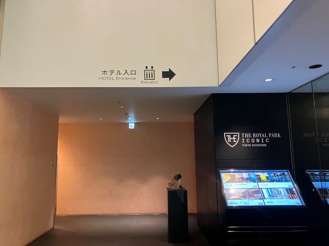 ③ 汐留タワーに入り直進するとホテル入口がございます。(ロイヤルパークアイコニック東京汐留)ホテル入口すぐにエレベーターがございますので、B3へ降りてください。 |