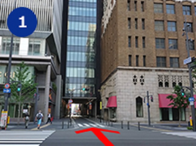 ① 御堂筋大丸前交差点からは御堂筋大丸北館と南館の間に入ります。 |