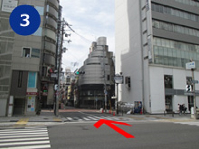 ③ 三休橋交差点からは長堀通りから鰻谷(うなぎだに)三休橋筋を入ります。 |