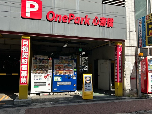 ⑥ 大宝寺通「OnePark心斎橋」南側入口がこちらとなります。(3Fにカーシェアリング車両設置) |