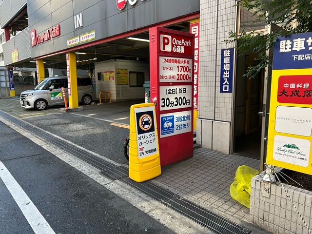 ⑤ 鰻谷南通「OnePark心斎橋」北側入口がこちらとなります。(3Fにカーシェアリング車両設置) |