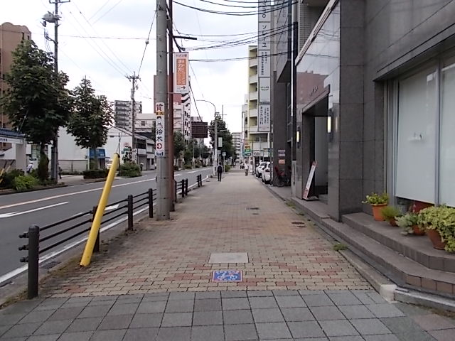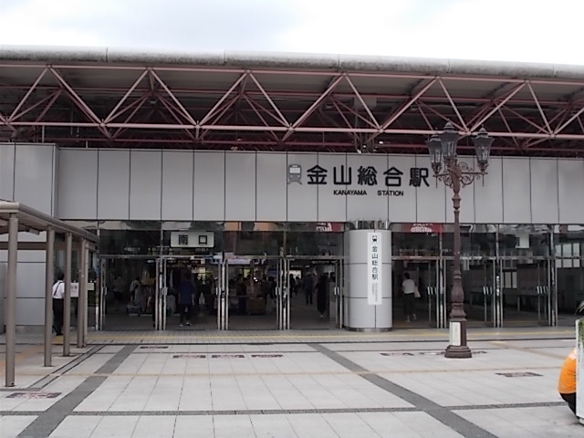 ① 「金山総合駅」南口を出て駅前広場を抜け、正面の通りへ出たら右方向へ進みます。 |