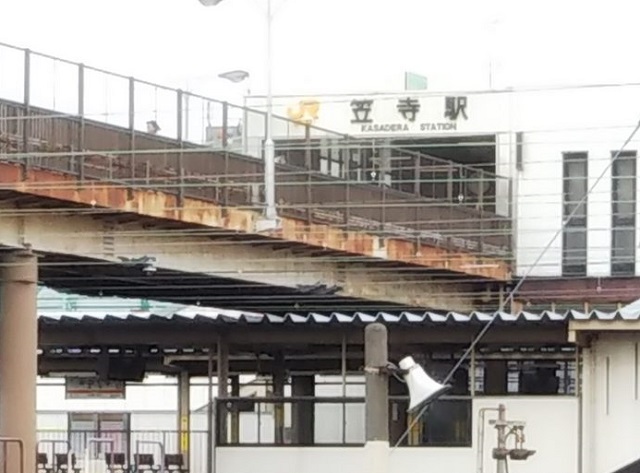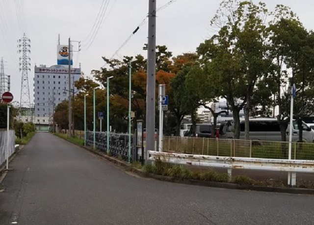 ① 「笠寺駅」西口を出て陸橋を渡り、階段を降り、駐車場を南へ向かいます。 |