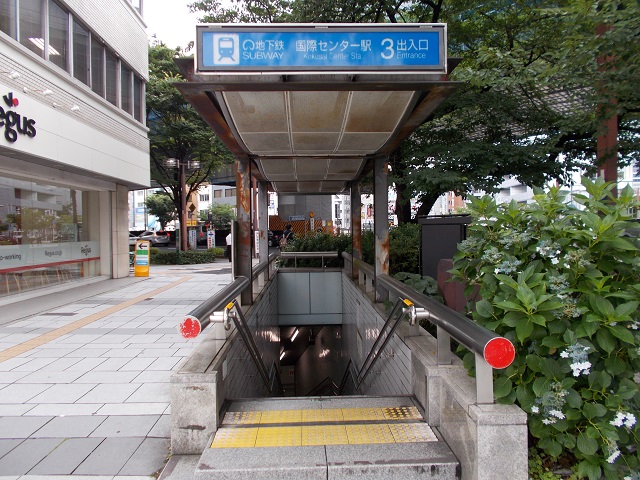 ① 「国際センター駅」3番出口を出ます。