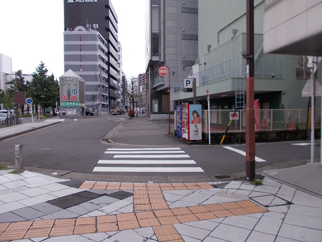 ② 右斜め前の横断歩道を渡り、直進します。