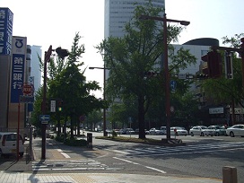 ① 桜橋西の交差点を堀川沿いに南に進みます。