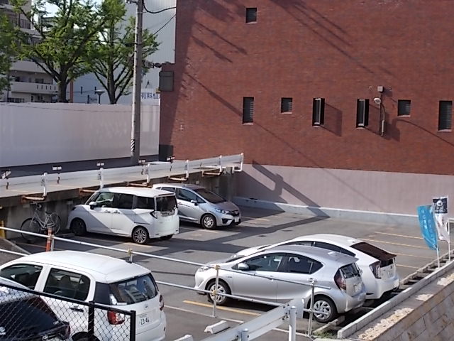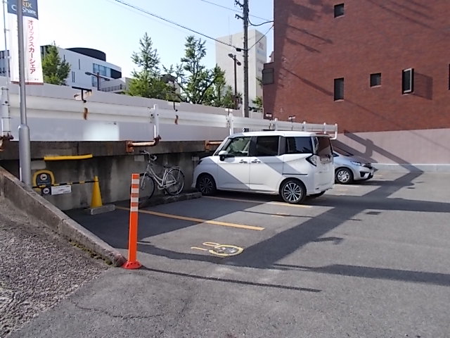 ③ スロープを下りてすぐ隣と離れたところ、川沿いにカーシェア車両があります。