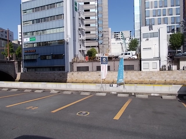 ③ スロープを下りてすぐ隣と離れたところ、川沿いにカーシェア車両があります。