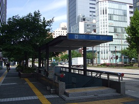 ③ 交差点の東南角のタワー駐車場の横に桜通長島町ステーションがあります。