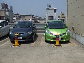② 右手側にある駐車場がステーション