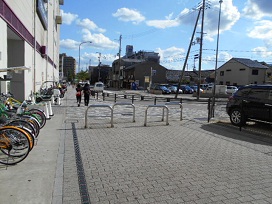 ③ 「BiVi二条」角の歩行者用通路を左に曲がります。通りを挟んで右斜め前方に駐車場がございます。