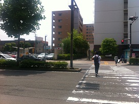 ② コンビニ「ベルマート」を右に見て「都ホテル」方向に進みます。