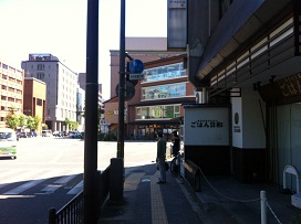 ① 北出口(丸太町通北)を出ます。右手にある「烏丸丸太町交差点」を右に曲がります。