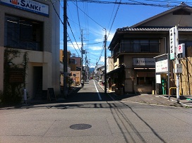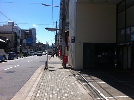 ② 「京都信用金庫」(烏丸丸太町交差点から3つ目の信号)の角を右に曲がり、油小路通に入ります。