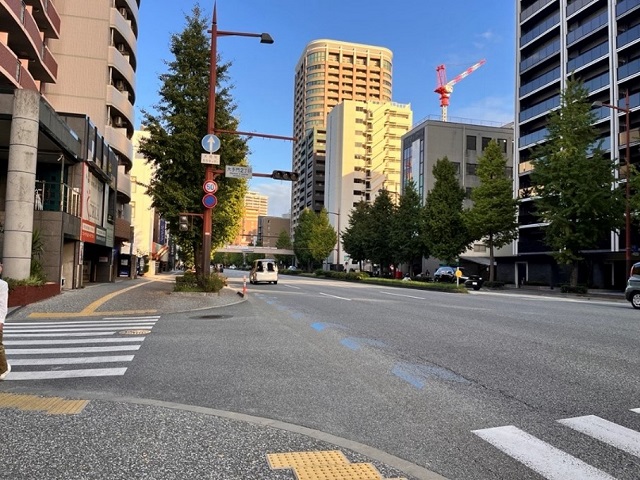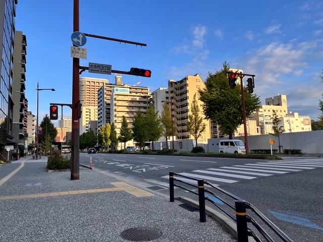 ④ 「大手門2丁目交差点」を右折し、横断歩道渡った右側角のマンションです。 |