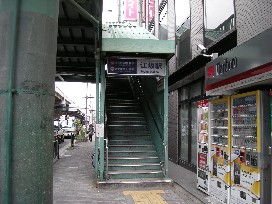 ① 「江坂駅」6号出口を出てすぐの交差点を左へ曲がります。