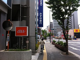 ② 1つ目の信号、「みずほ銀行」角を左折すると、右側に駐車場がございます。
