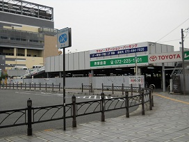 ② 階段を降りてすぐ前(ロータリー横)に2階建ての駐車場がございます。2軒駐車場ビルがございますのでご注意ください。 |
