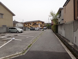 ③ 松浦医院(皮膚科)の手前のT字路を南方向へ。通路の奥に駐車場がございます。