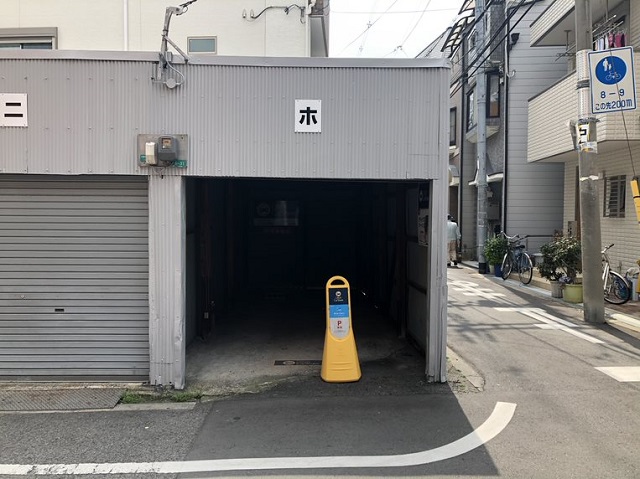 ③ 駐車場全体(郵便局前、シャッター・屋根つき駐車場)
