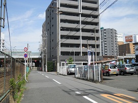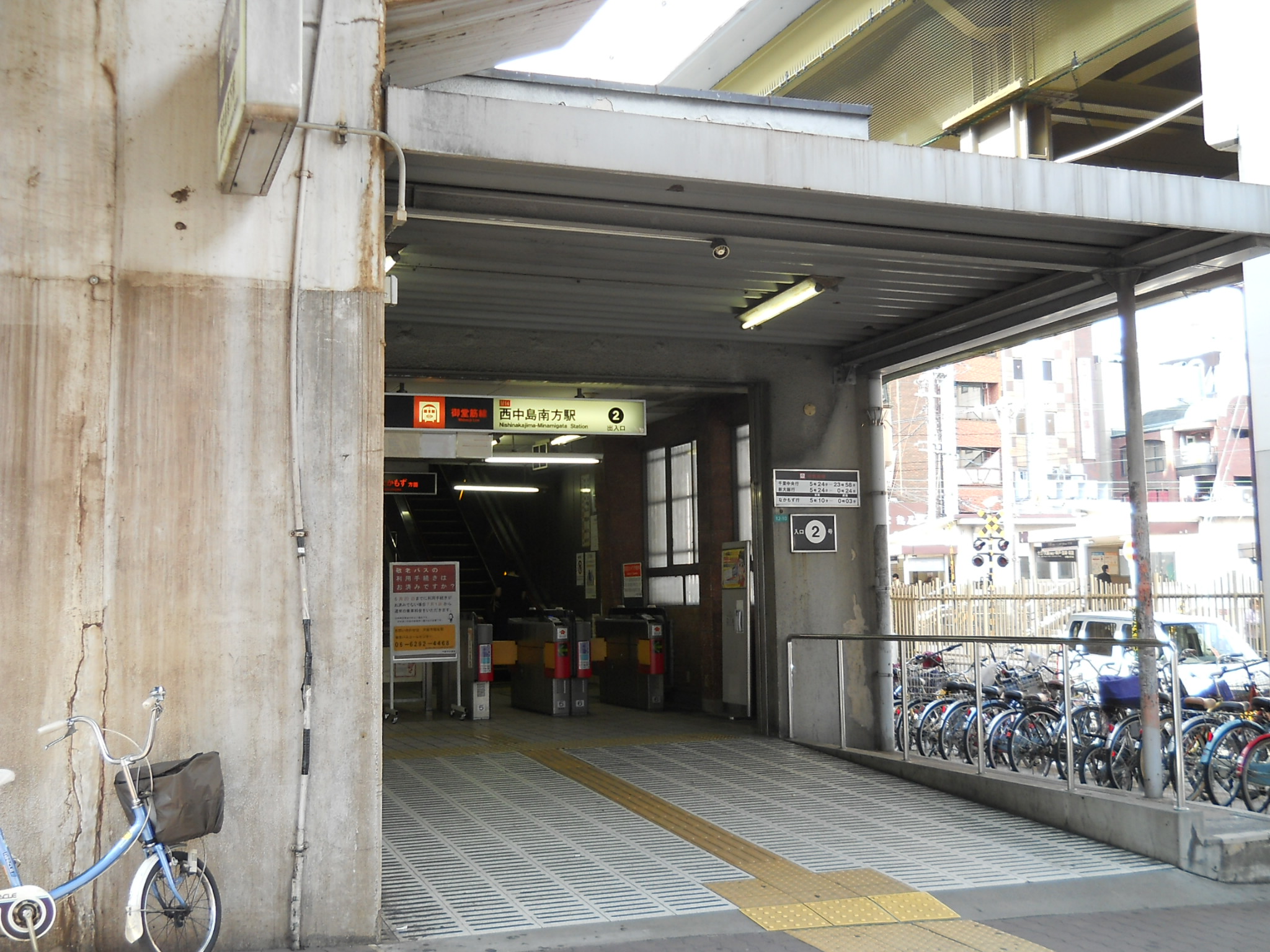 ① 「西中島南方駅」2号出口より西方向へ進みます。