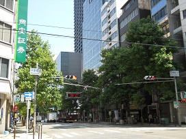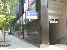 ① 「北浜駅」5号出口を出て「堺筋本町駅」方面へ直進します。