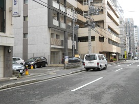 ③ 一つ目の十字路を西方向へ。駐車場全体