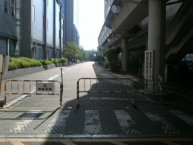 ① 大阪モノレール「千里中央駅」からは、改札を出てすぐの階段を下りてそのまま東方向に進むと車庫が見えてきます。 |
