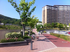 ② ファミリーマート前の交差点を横断し、「ジオ彩都のぞみ丘」方向へ進みます。